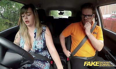 Fake Driving School Good-sized British boobs one last lesson