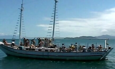 A horny crowd of naked busty ladies and scorching dudes set up a sizzling orgy