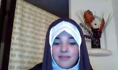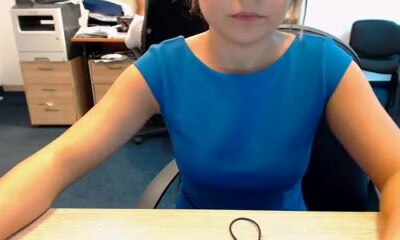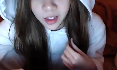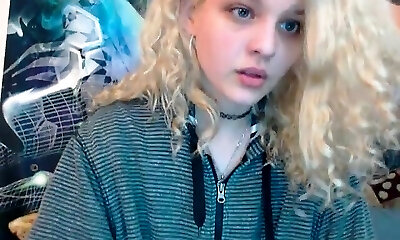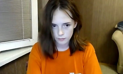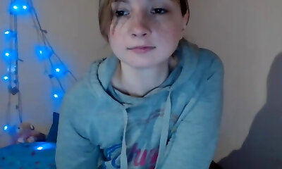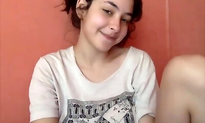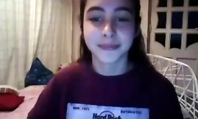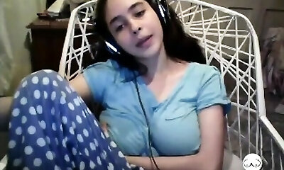 Nineteen year old buxomy webcam girl with innocent face touches her big natural ti