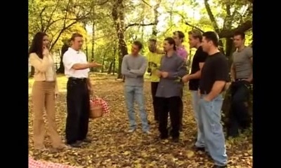 hot dark-haired hard anal gangbang and bukkake by many cocks