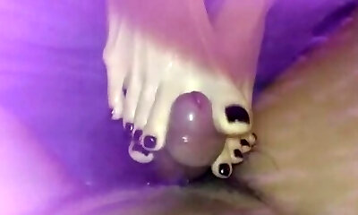les pieds dans les nylons trempés de jism et de pipi