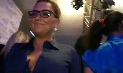 Fabulous stripper entertains a huge crowd of horny girls dancing bare in a club