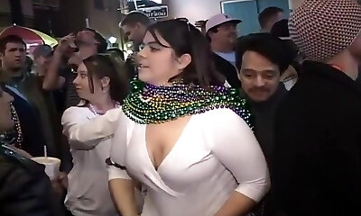Awesome towheaded woman flashes tits and pussy in public - RARE