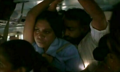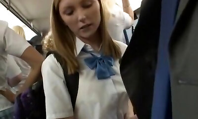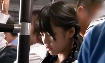 Busty, Asian brunette is getting molested in a public buss, but she likes it a plenty of