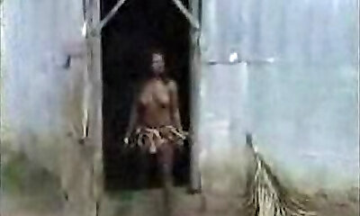 Amateur dark haired chick showcases her bum and urinates in the public bus